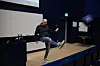 Der er både tid til at skifte batterier på de firkantede kaste-mikrofoner og kaste dem ud i auditoriet for at se, om de stadig kan sådan noget. Der er tid til at rydde op endnu engang på den kuglepensfyldte disk, og der er tid til at tjekke lyd med lidt Formel 1 på storskærmen i det blå auditorium.