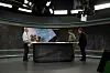 Programmet, der varer en halv time, tager også kun en halv time at optage. Kim Bildsøe har lige gennemgået de ting, der skal ske i dagens program. Noget af grafikken har drillet op til udsendelsen. Blandt andet har et digitalt kort centreret om byen Kursk været beskåret forkert.